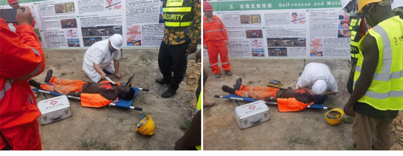 Dangote尼日利亞Irori 2*6000t/d熟料線樁基B標項目部,在旋挖成孔鉆孔灌注樁鋼筋籠制作棚,開展了焊接時發(fā)生觸電事故救援專項應(yīng)急預(yù)案演練。以預(yù)案為指導(dǎo),醫(yī)務(wù)人員現(xiàn)場示范,躬身演練,對電擊員工進行傷情初步檢查、實施口對口呼吸法和心肺功能復(fù)蘇法等急救方法,使中尼兩國員工深入交流安全理念、切磋急救方法,傳播中國安全文化,講好中國企業(yè)故事。